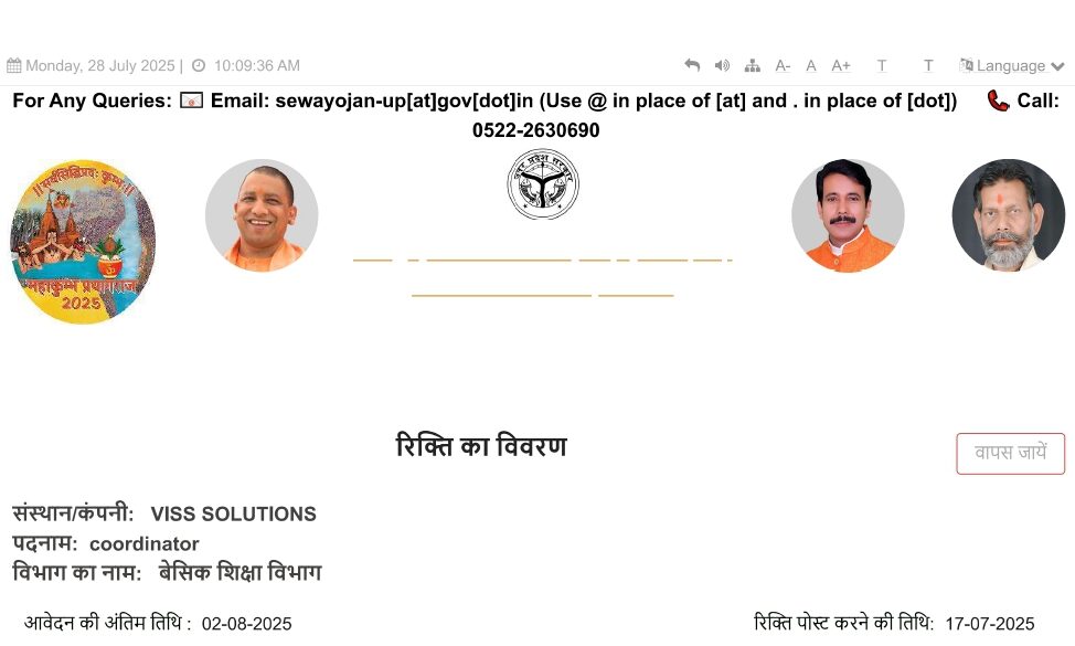 कोऑर्डिनेटर पद पर बेसिक शिक्षा विभाग में भर्ती 2025