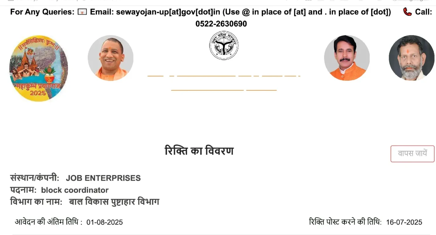 बिना परीक्षा दिए उत्तर प्रदेश के सरकारी विभाग में नौकरी करने का मौका -जिला परियोजना सहयोगी पद