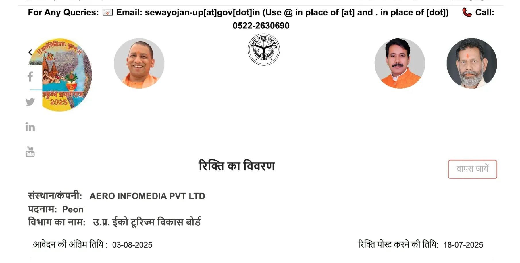 उत्तर प्रदेश के सरकारी विभाग में ITI पास युवाओं के लिए जॉब का सुनहरा मौका – जानिए आवेदन की आखिरी तारीख और योग्यता