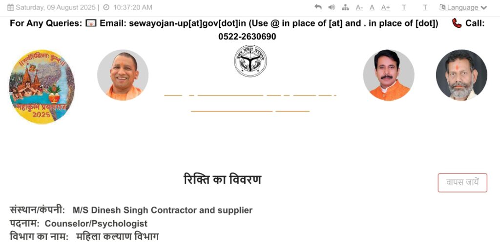 - इच्छुक अभ्यर्थी सेवायोजन विभाग के वेब पोर्टल http://sewayojan.up.nic.in पर अपना पंजीयन कर vacancy के सापेक्ष आवेदन कर सकते है।